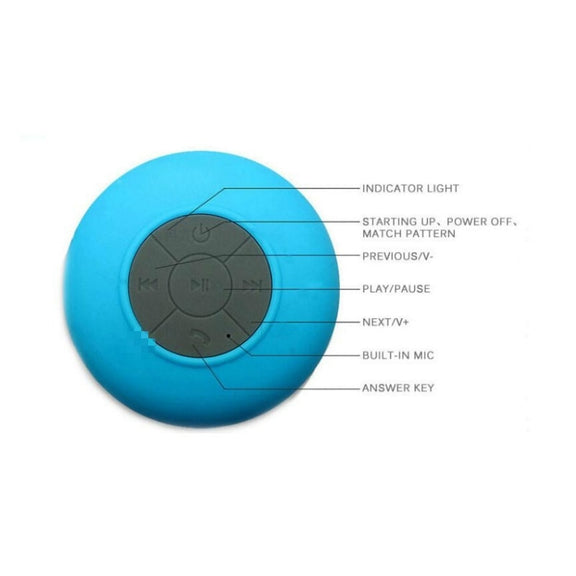 Portable waterproof Bluetooth speaker with suction cup for Bathrooms and Kitchens.